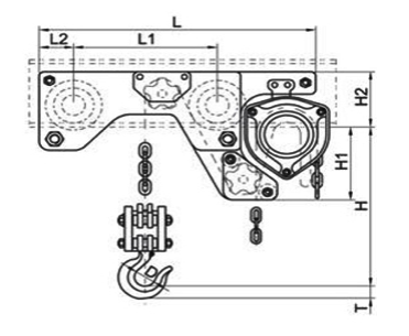低净空手拉葫芦也叫做超低型手拉葫芦,是将一种单轨小车和手拉葫芦组合在一起的新型起重工具,主要由罩壳、吊钩、链轮和传动装置组成。